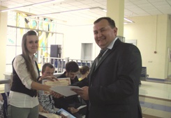 Так же по-студенчески дружно и весело принимали поздравления. Сегодня, 14 июня 2011г. директор Агентства «ВЭП» Александр Дерендяев поздравил ребят с победой. Под одобрительные возгласы и аплодисменты ребятам были вручены дипломы победителей, подписанные руководителями 3-х банковских ассоциаций. Организаторы Интернет-Чемпионата надеются, что такие «документальные» доказательства активности и острого профессионального ума в дальнейшем очень помогут ребятам в ориетации на рынке труда и построении карьеры.